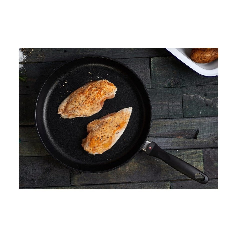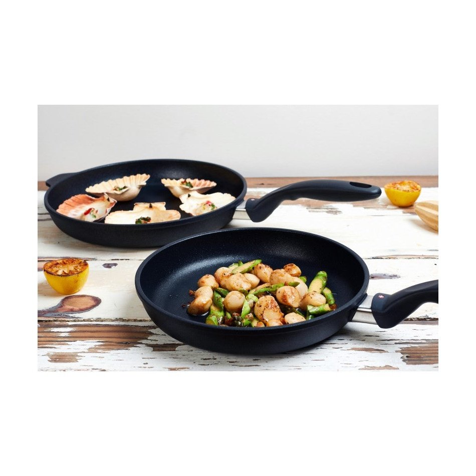 Erittäin paksu valualumiinirunko. Tasapohjainen, hyvä lämmönjohtuvuus. Kolmikerroksinen patentoitu timanttivahvisteinen XD -pinnoite. Kestää lämpöä uunissa 260°C saakka. Kahva pysyy viileänä liedellä käytettäessä. Sopii kaikille liesityypeille.