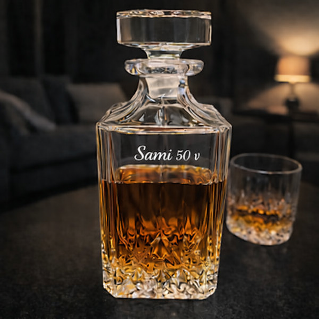 Tämä elegantti viskisetti sopii niin kotibaariin, juhlapöytään kuin edustavaksi liikelahjaksi. Kirkas kristallilasi korostaa juoman väriä ja tuo ylellisen tunnelman tarjoiluun.