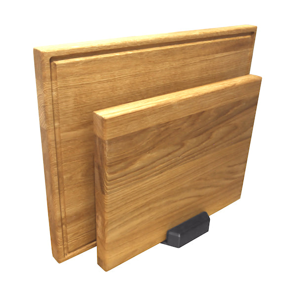 HAH leikkuulautasetti on laadukas ja käytännöllinen kokonaisuus vaativaan kotikeittiöön ja ammattikäyttöön. Setti sisältää kaksi Suomessa valmistettua tammista leikkuulautaa sekä PK-2-telineen, joka pitää laudat siististi järjestyksessä ja kuivumassa oikein.