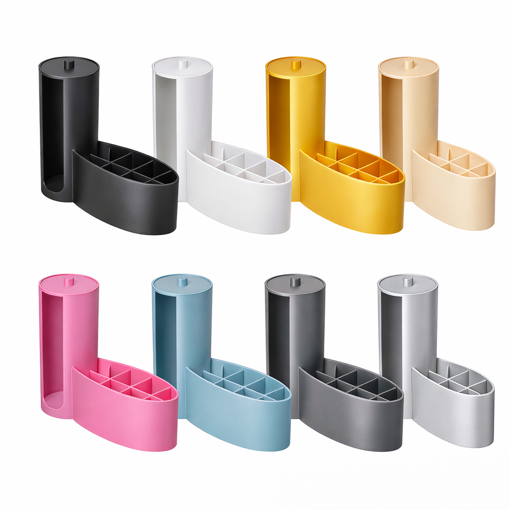 Tämä 3D-tulostettu meikkitarviketeline on suunniteltu sekä käytännölliseksi että tyylikkääksi. Moderni muotoilu sopii hyvin kylpyhuoneeseen, meikkipöydälle tai pukeutumispöydälle. Useat värivaihtoehdot mahdollistavat telineen sovittamisen sisustukseen.