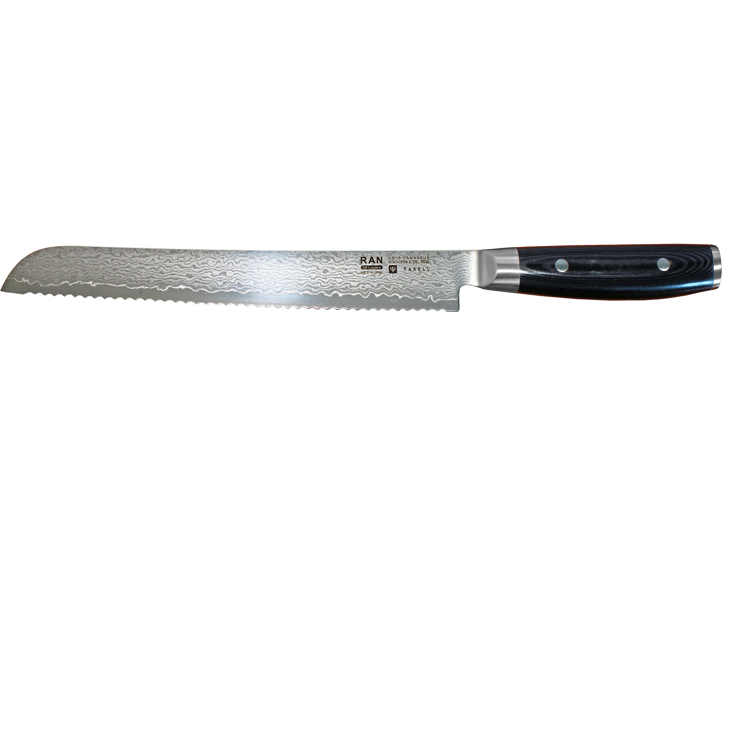 Yaxell Ran leipäveitsi leikkaa paitsi kovaa leipää myös kovia hedelmiä ja vihanneksia helposti. Terän kovuus ja sahalaita takaa tehokkaan leikkuun.