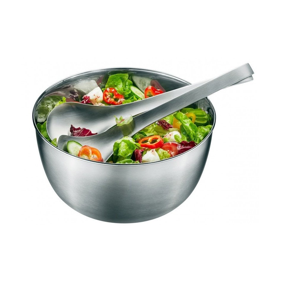Rapeiden, mutta puhtaiden salaattien salaisuus on salaattilinko. Pyyhkeellä tai talouspaperilla kuivatut salaatinlehdet lyttääntyvät ja menettävät rapean rakenteensa. Linkoamalla ne saadaan tehokkaasti kuivaksi ja säilyttämään miellyttävän olomuotonsa. Lingon tyylikkäässä jaloteräskulhossa voit viedä salaatit pöytään. Halkaisija: 27 cm, korkeus: 14,5 cm, tilavuus: 5 litraa, paino: 1,57 kg. Gefun salaattilingossa on vetomekanismi ja jarrunappi jolla saat salaatin kuivaksi silmänräpäyksessä. Salaattilingossa on myös kätevää sälilöä salaatti: jätä lingottu vesi pohjalle ja aseta koko linko jääkaappiin, näin salaatti pysyy tuoreena ja kosteana tarjoiluun asti.