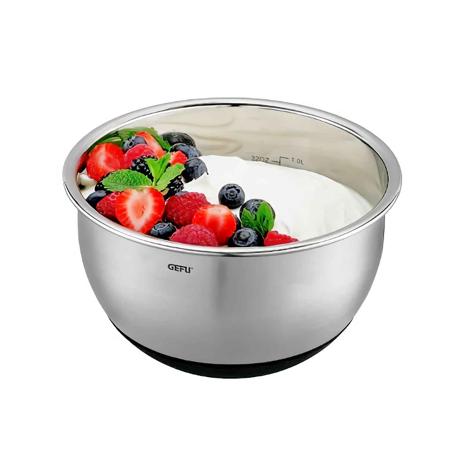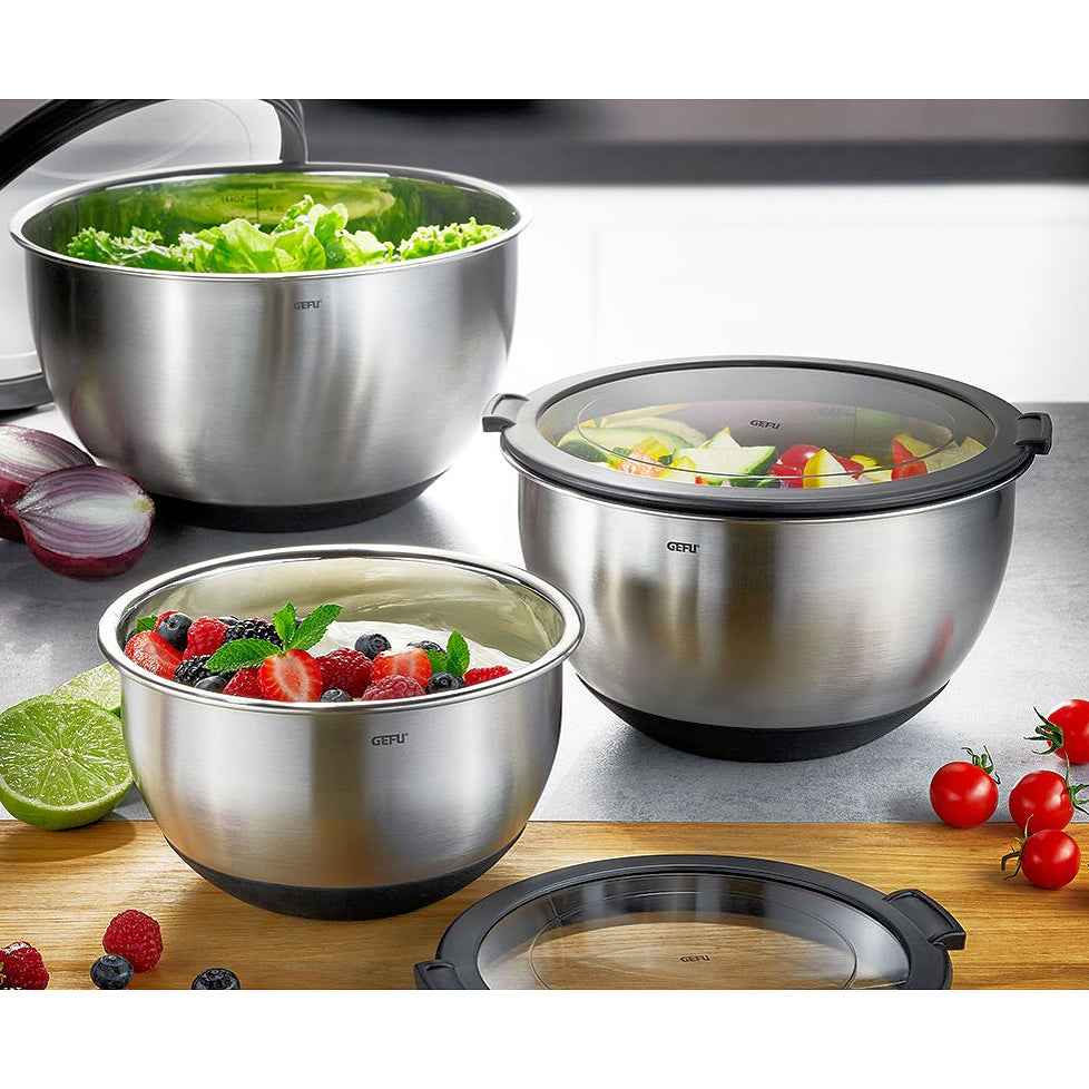 Tutustu monipuoliseen Gefu vatkauskulho kannella, joka on täydellinen keittiövaruste ruoan valmistukseen, säilytykseen ja tarjoiluun. Tämä ruostumattomasta teräksestä valmistettu kulho on sekä kestävä että käytännöllinen. Siinä on kätevä läpinäkyvä kansi, joka on ilmatiivis, joten ruokasi pysyy tuoreena pidempään.