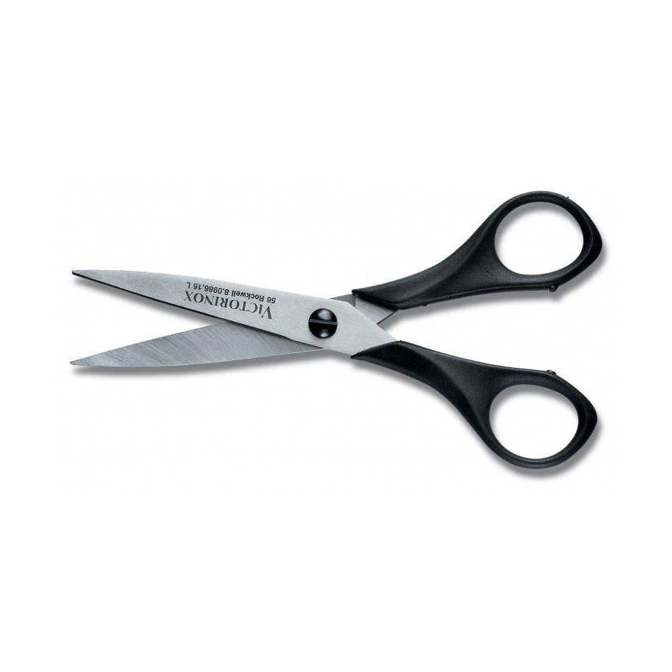 Kotitaloussakset ruostumattomasta teräksestä. Terien kovuus 56 HRC. Sopii sekä vasen- että oikeakätisille.
