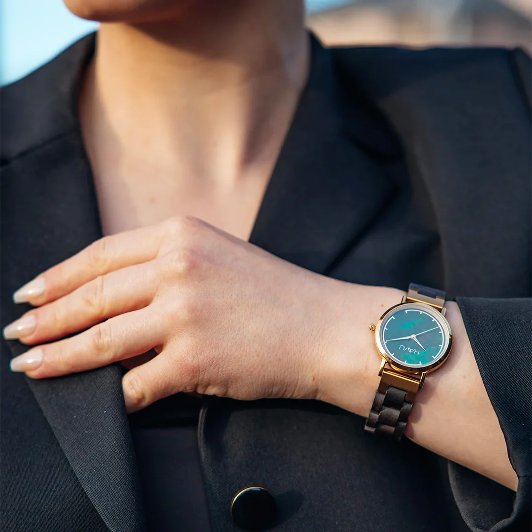 Pohjoisen revontulitaivaan inspiroima rannekello.