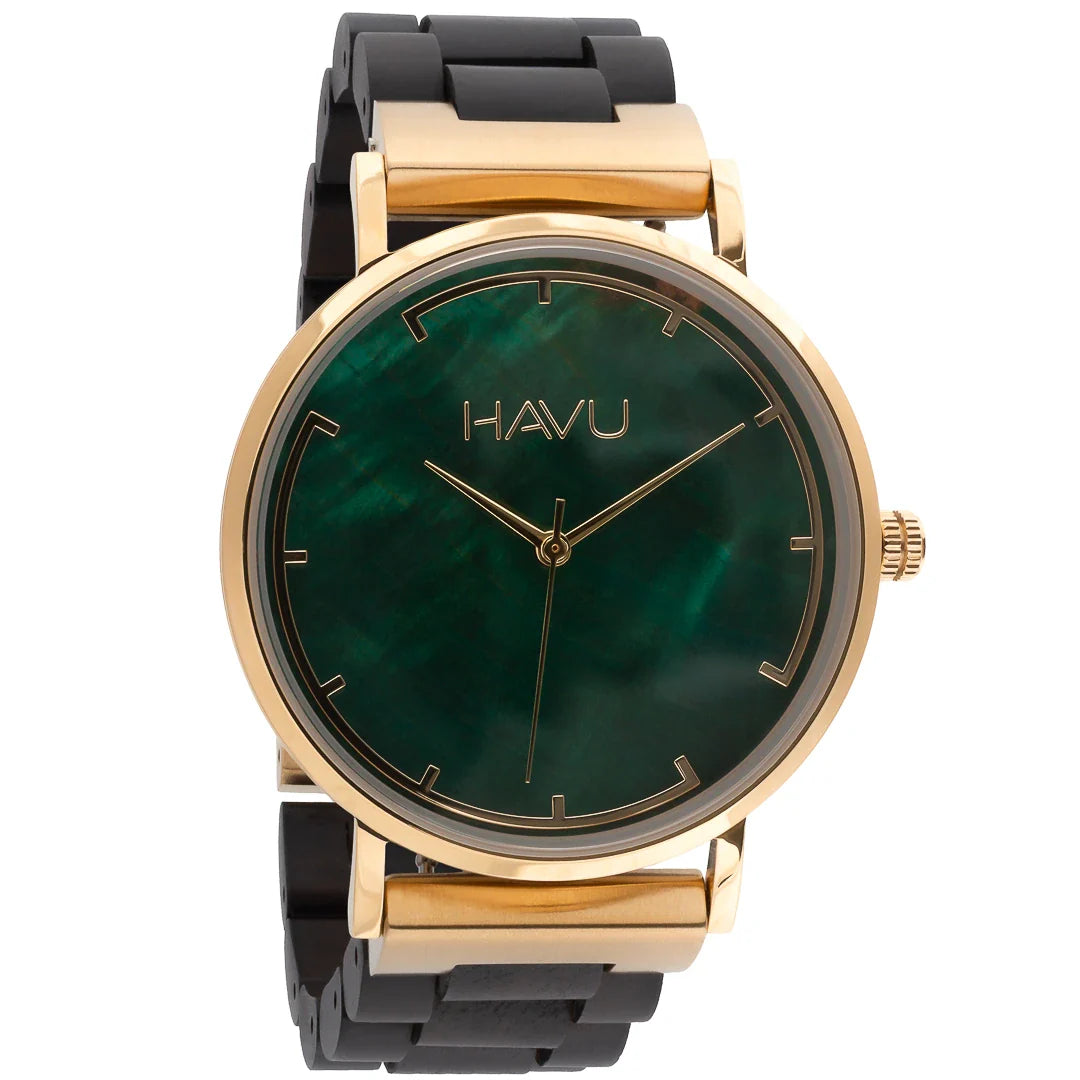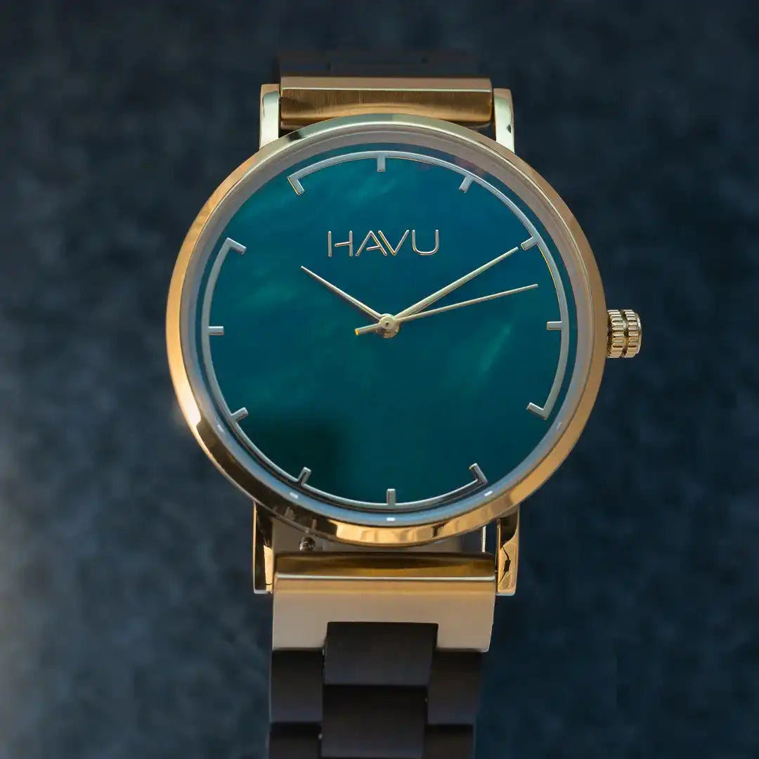 Revontulikellon kellotaulu on valmistettu aidosta suomalaisesta loimukoivusta, joka on vihreäksi stabiloitu. Stabilointi luo puuhun yksilöllisen värimaailman ja varmistaa sen kestävyyden. Tämä tekniikka on täysin uniikkia rannekelloissa.