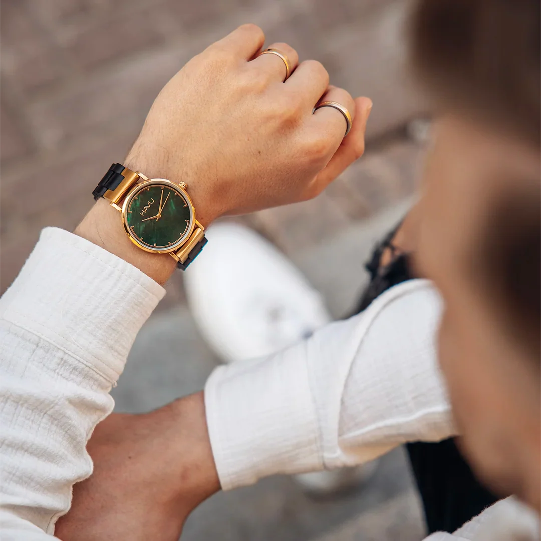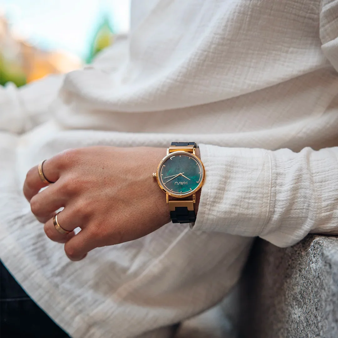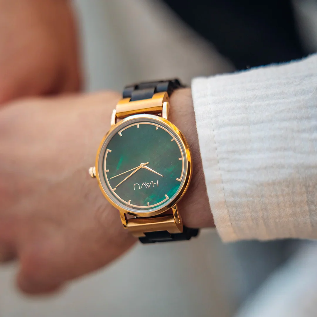 Pohjoisen revontulitaivaan inspiroima rannekello.