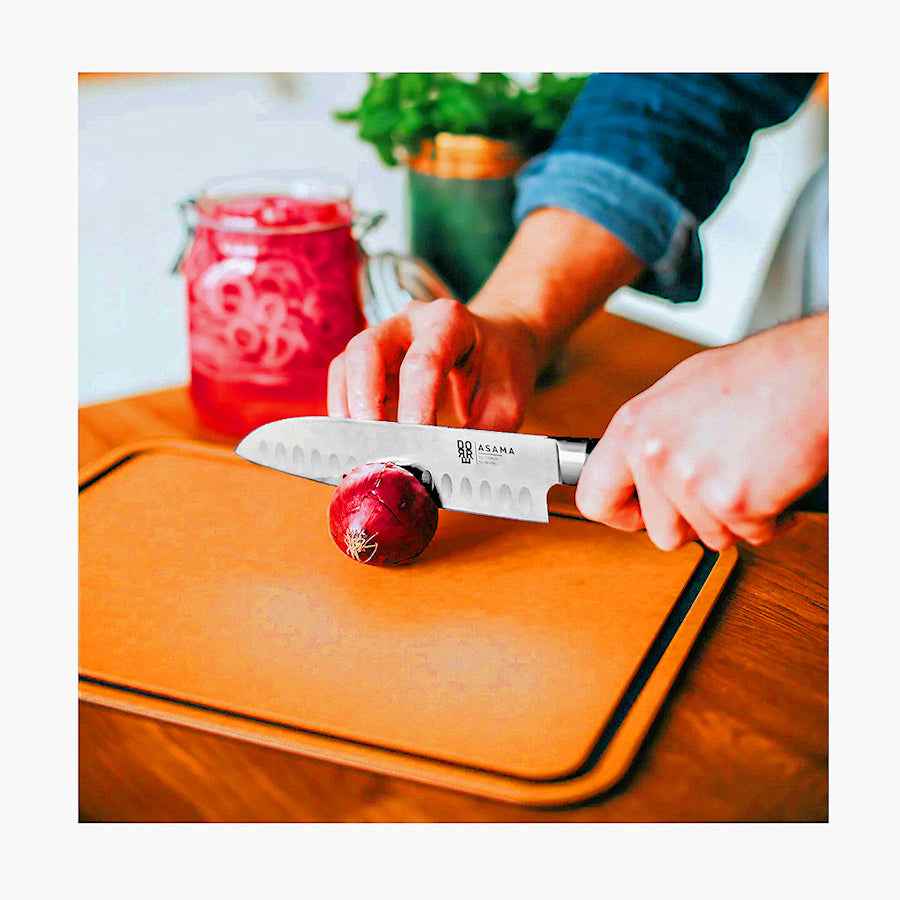 Sami-leikkuulauta on valmistettu kovapuristetusta mäntykuidusta, mikä takaa kestävän ja hygienisen pinnan, joka on hellävarainen veitsille. Sen reilu koko tarjoaa runsaan työskentelyalueen, joka on täydellinen suurempiin ruoanvalmistustehtäviin. Materiaali on luonnostaan antibakteerinen ja kestää korkeita lämpötiloja, mikä tekee leikkuulaudasta ihanteellisen päivittäiseen käyttöön keittiössä. Laudan voi pestä astianpesukoneessa.