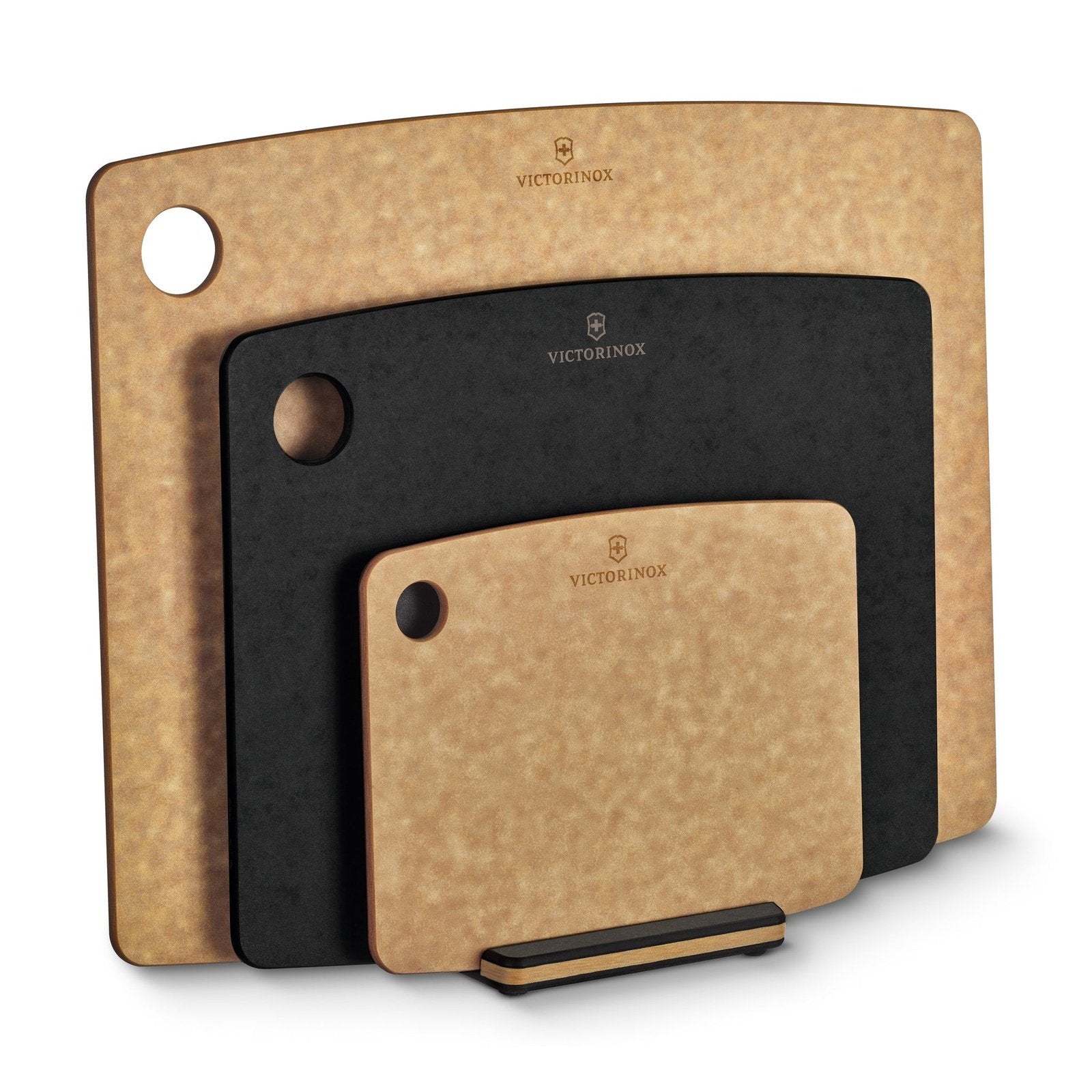 Teline on valmistettu astianpesukoneen kestävästä, ympäristöystävällisestä paperikomposiittimateriaalista. Näppäränkokoisessa, yksinkertaisessa telineessä on tilaa kolmelle leikkuulaudalle. Sopivan leikkuulaudan enimmäispaksuus on 6 mm, joten se sopii hyvin esim. Victorinoxin pizzalaudoille sekä Kitchen-, All-in-One- ja Handy-sarjojen leikkuulaudoille. Telineen pohjassa olevat liukuesteet pitävät sen paikallaan keittiön tasolla.