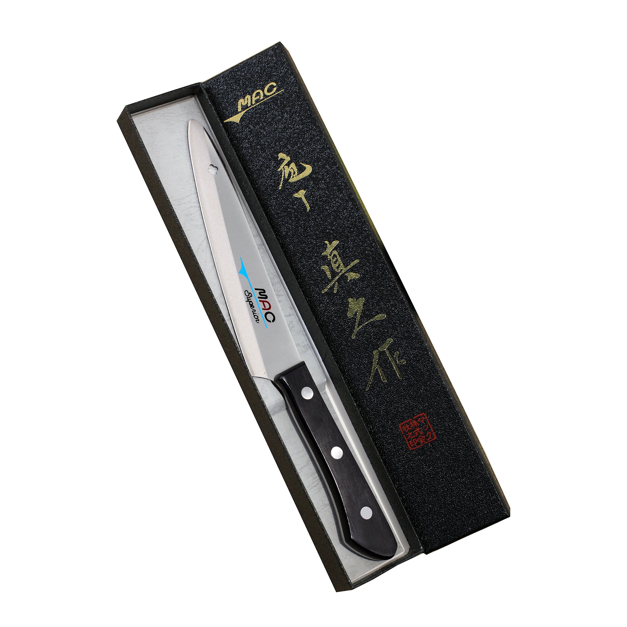 Erinomainen tasapainotus ja käsiteltävyys. Terän kovuus on optimaalinen, RC 57-61º, mikä tekee uudelleenteroittamisen helpoksi. Terä on molemmin puolin viistetty ja teroitetaan molemmilta puolilta hieman epäymmetriseen MAC- kulmaan, joka optimoi veitsen hallinnan viipaloitaessa.