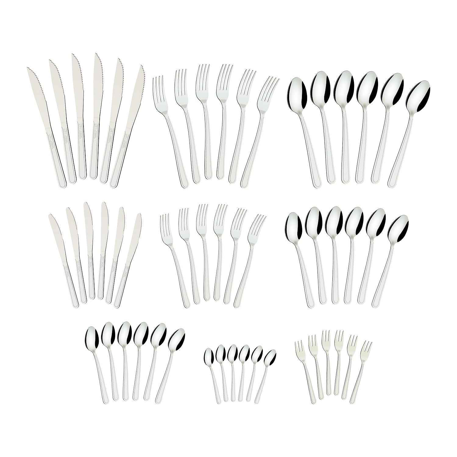 - Haarukat (6 kpl): Tukeva rakenne päivittäiseen käyttöön.