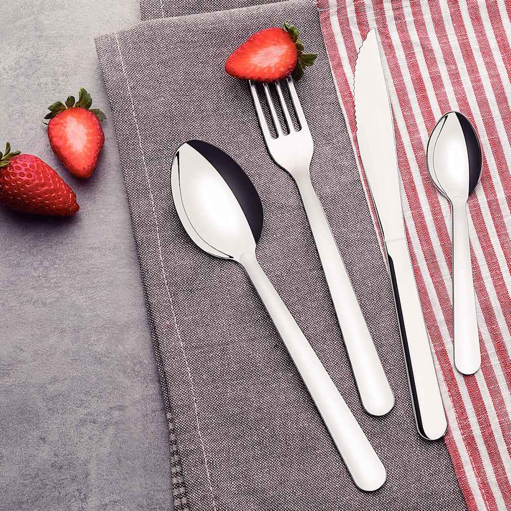 Tämän setin aterimet ovat konepesun kestäviä, mikä tekee niiden puhtaana pitämisestä helppoa arjen kiireissä. Tramontina Malibu aterinsetti yhdistää toimivuuden ja designin kodin jokapäiväisiin illallisiin tai erikoistilaisuuksiin kosketusta lisätäksesi. Miksi tyytyisit vähempään kun voit valita Tramontinan? Paranna ruokailuelämystäsi ja tee vaikutus vieraisiisi tällä korkealaatuisella aterinsetillä, saatavilla nyt Veitsikaupasta.