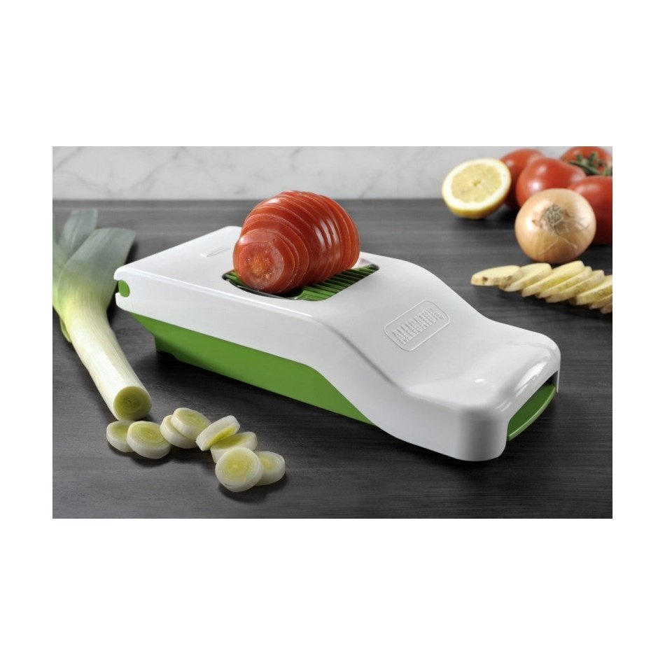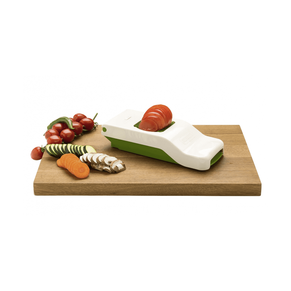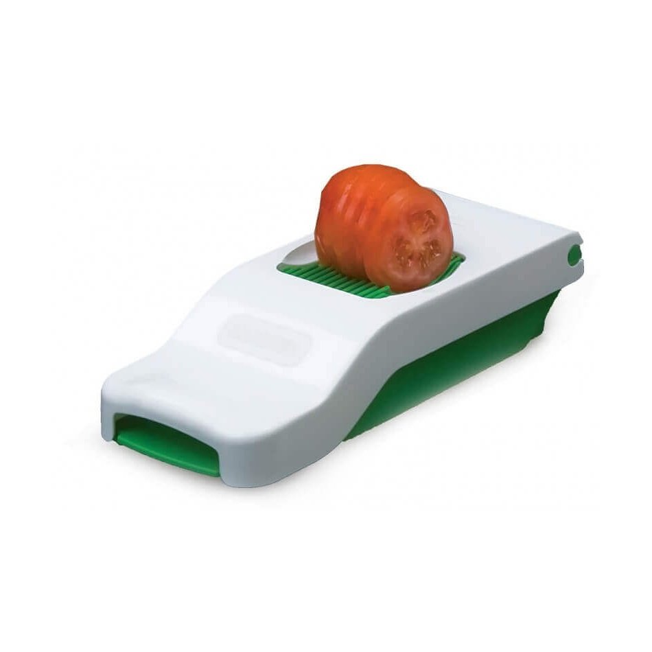 Alligator Slicerillä teet 5 mm viipaleita yhdellä painalluksella, vihanneksista, hedelmistä ja jopa tomaatista.