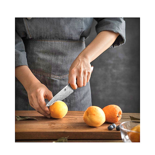 Veitsen terä on valmistettu 110-kerroksisesta Damaskus-teräksestä (10Cr15CoMoV + 9Cr18MoV). Tämä yhdistelmä tarjoaa poikkeuksellisen terävyyden, kestävyyden ja korroosionkeston.