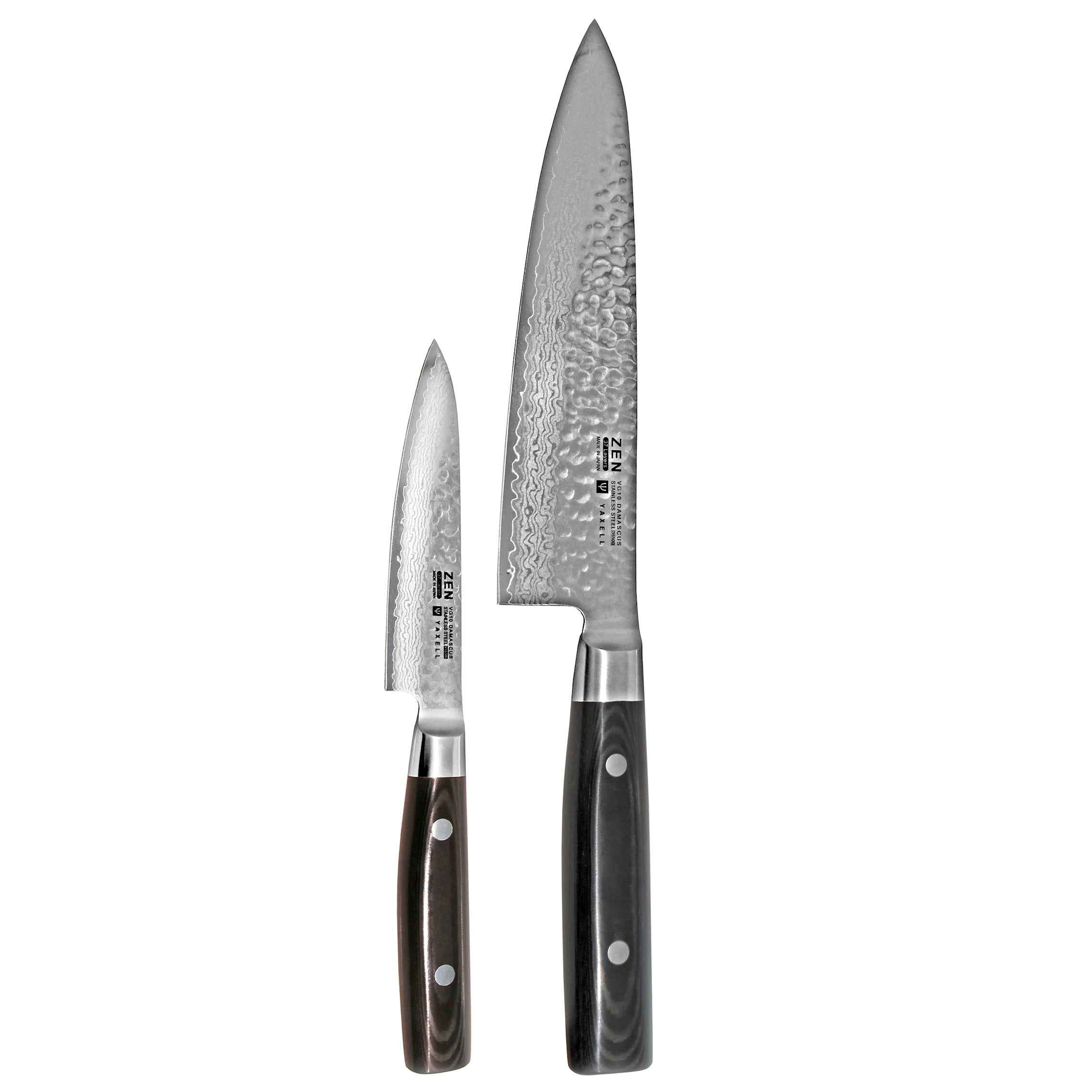 Yaxell Zen setti sisältää 2 huippulaatuista japanilaista veistä. Veitsien terissä on 37 teräskerrosta ja terän ydin on VG10 terästä joka antaa terälle kovuuden HRC 61.